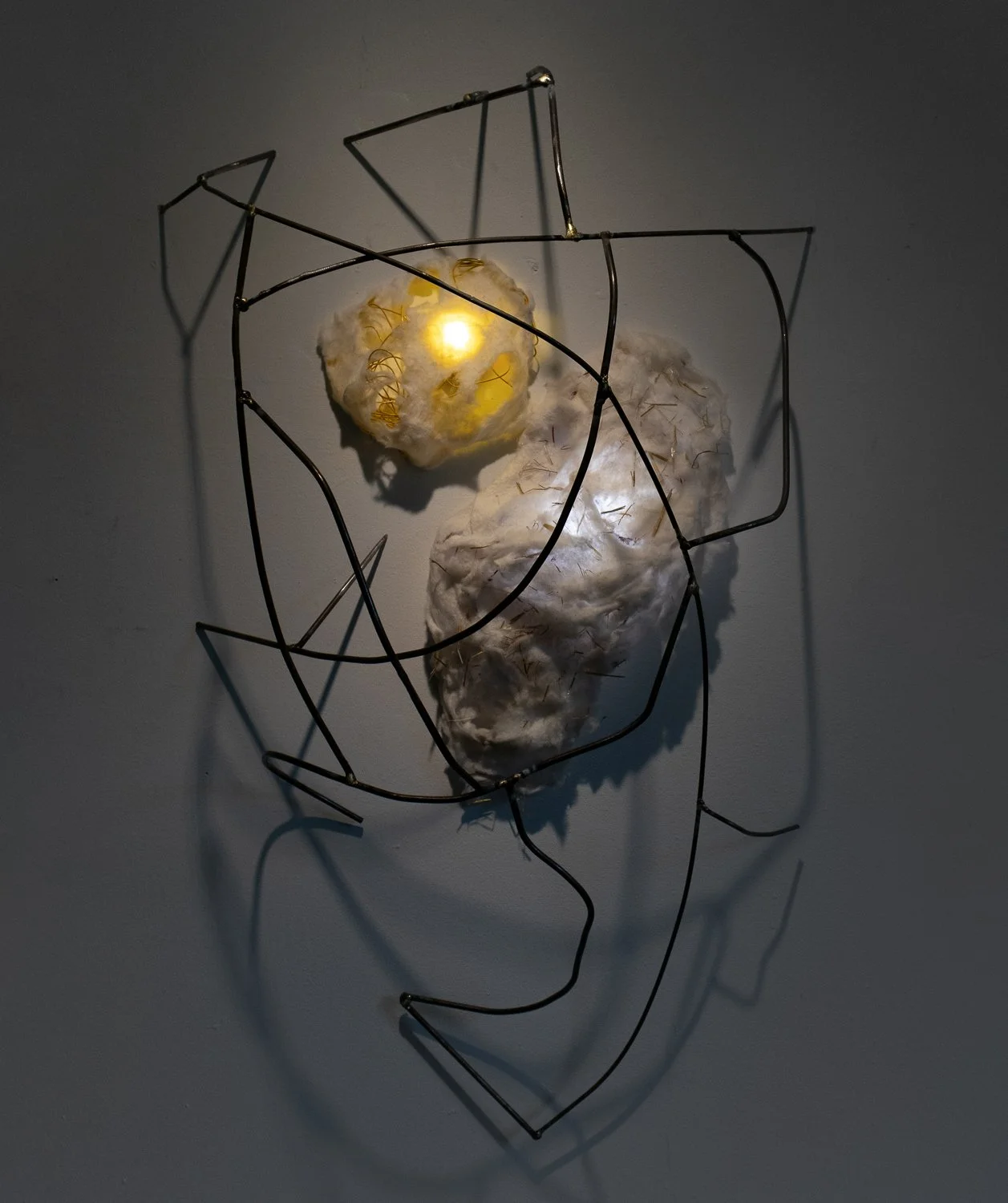Crawling20252’4” x 3’10” x 1’3”hot-rolled steel rods, fabric, wire, LED lights, copper braze, hay, spray paint, nails